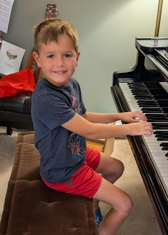Ezra is a new beginner who has already learned to play “Twinkle, Twinkle Little Star”. He enjoys soccer, reading, and playing board games.